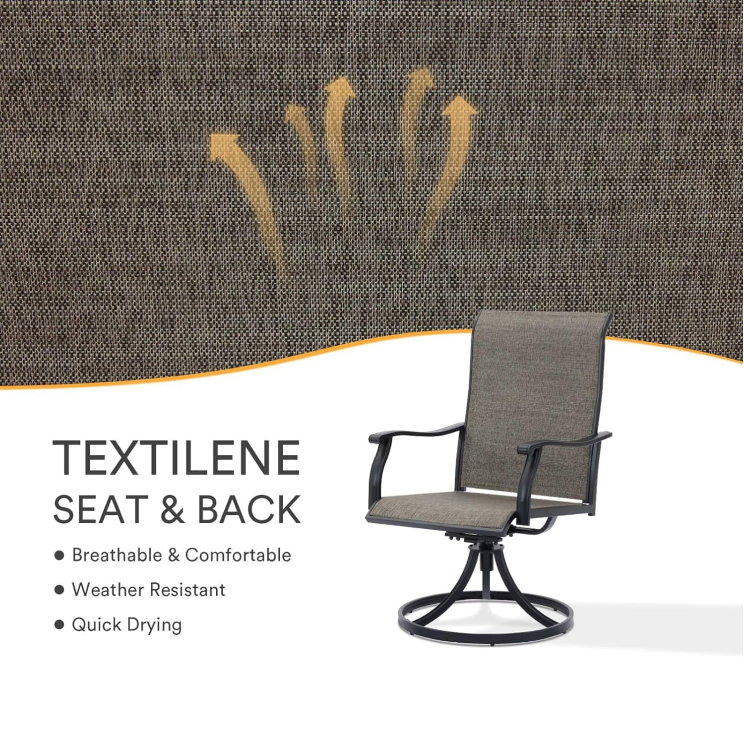 • Asientos de tela de textileno transpirable: disfrute de períodos prolongados de comodidad sentado con asientos de tela de textileno transpirable que lo mantienen fresco