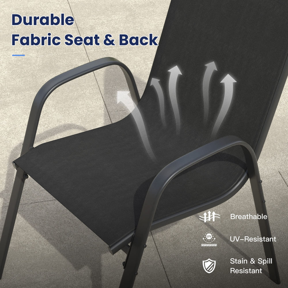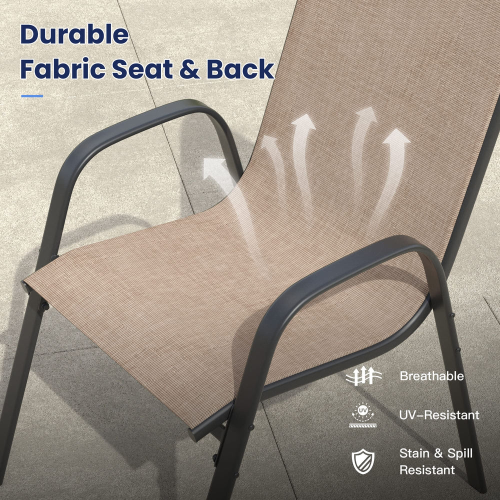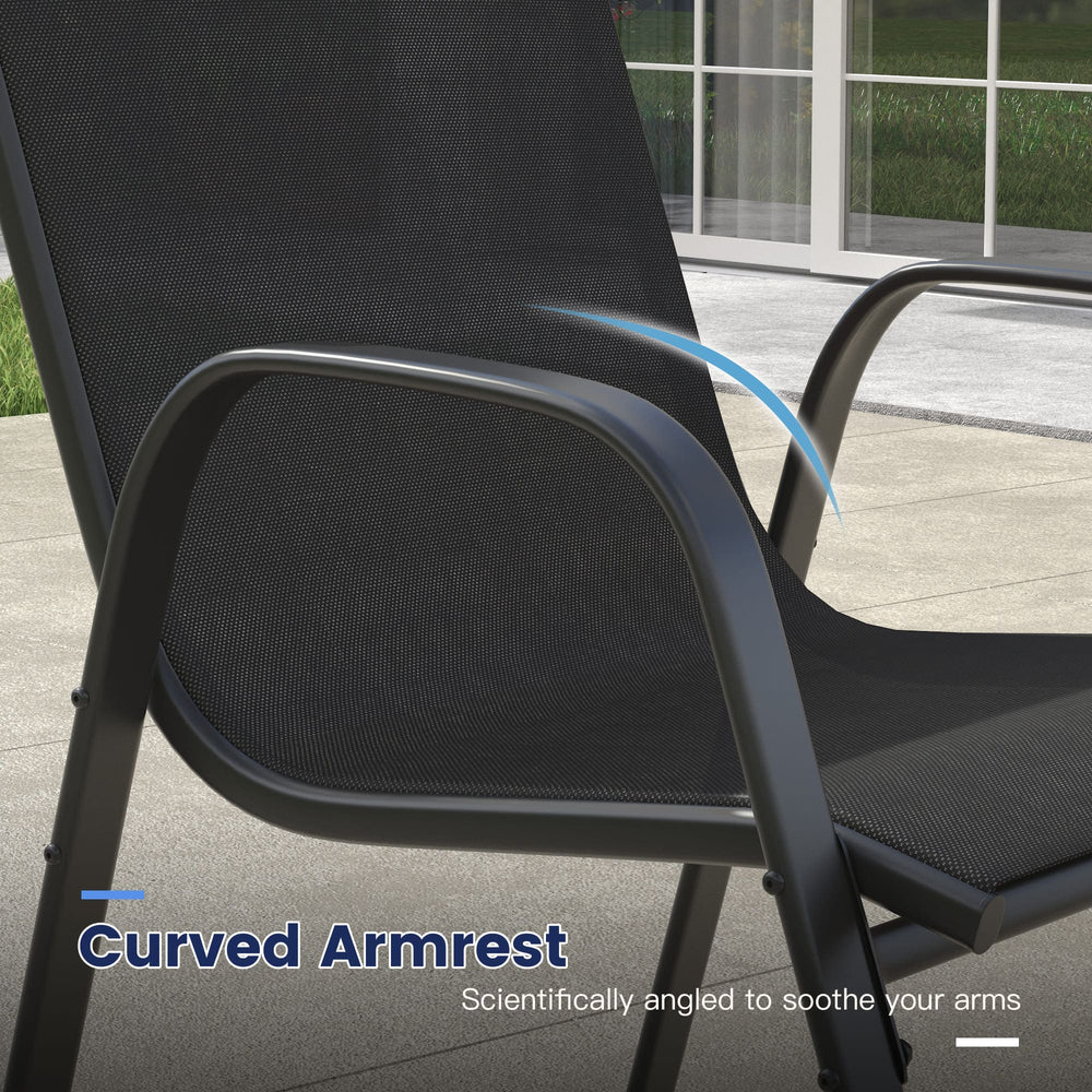 - Quick-Dry & Weather-Friendly Design: Textilene fabric is water-resistant and quick-drying, making it perfect for outdoor use. After rain or cleaning, the chairs dry quickly, so your patio set is always ready for relaxation or dining.