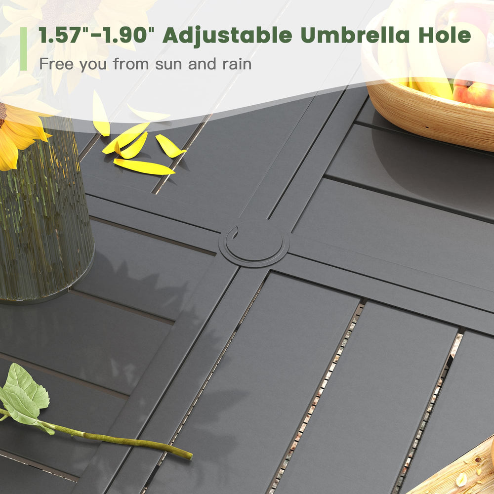 Crafted with E-coated rust-resistant steel, this table promises enduring beauty. Embrace worry-free outdoor dining as the robust coating ensures durability, making it a stunning addition that stands the test of time.