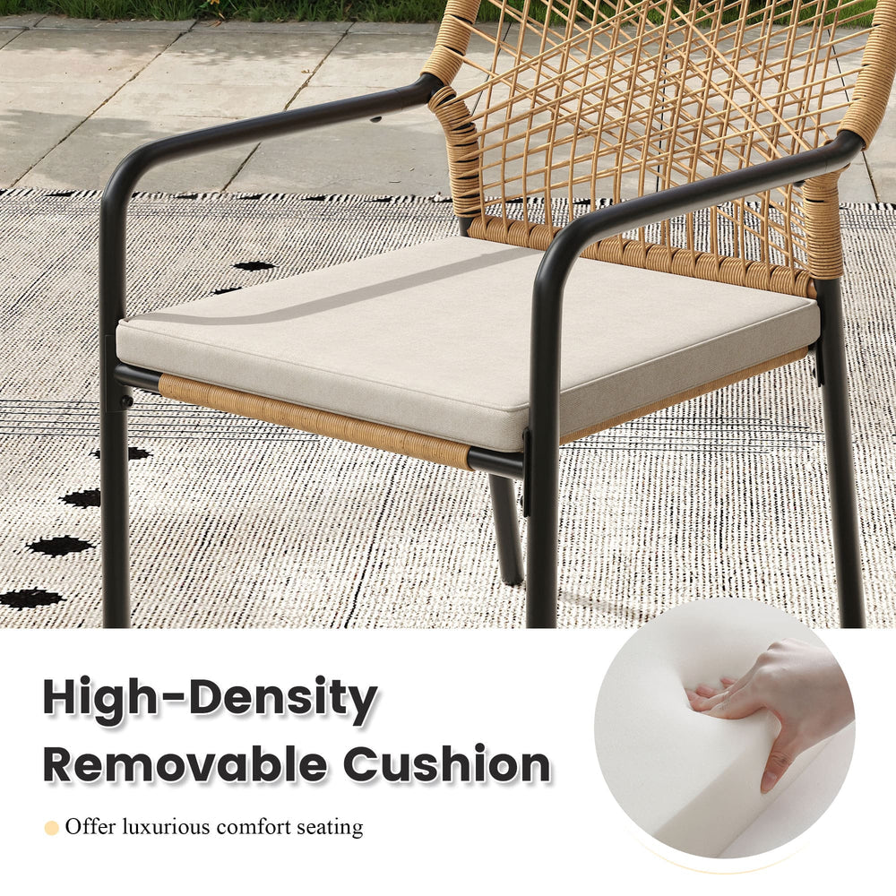 - Ultimate Cushion Comfort: Each chair comes with a high-density foam seat cushion upholstered in UV-protected, water-repellent beige fabric. The covers are removable and machine-washable for effortless maintenance.