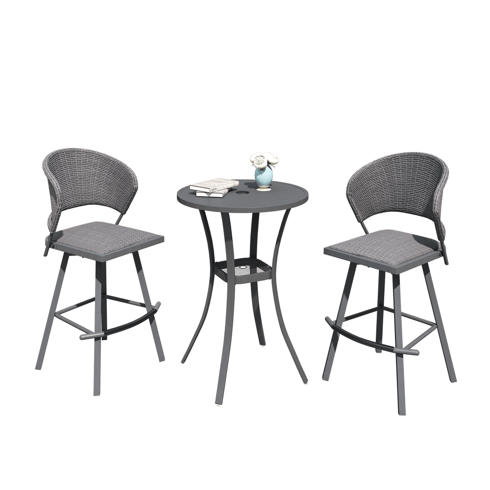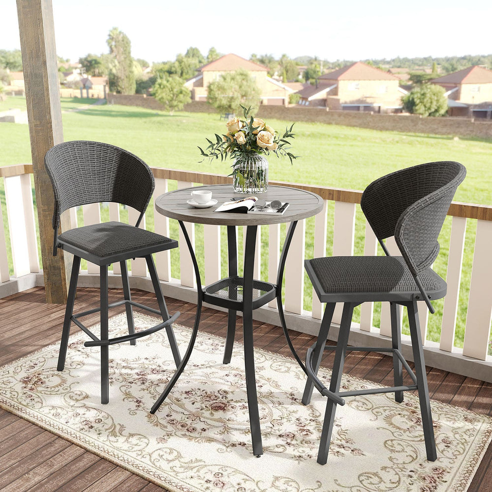 Vicllax 3/5 PCS Outdoor Swivel Bar Set, Patio Wicker Bar Chairs and Round Bar Table - Grey / 3Pcs-27.6" is backordered and will ship as soon as it is back in stock.