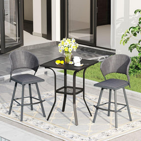 Vicllax 3/5 PCS Outdoor Swivel Bar Set, Patio Wicker Bar Chairs and Square Bar Table - Grey / 3 PCS is backordered and will ship as soon as it is back in stock.