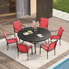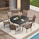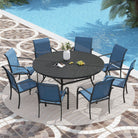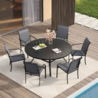 - Stylish Outdoor Dining: Vicllax's 7/9/11 pieces Dining Set features a chic 50"/53"/60" metal table and modern Textilene armchairs, perfect for al fresco meals.