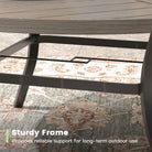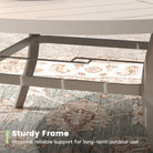 Crafted with E-coated rust-resistant steel, this table promises enduring beauty. Embrace worry-free outdoor dining as the robust coating ensures durability, making it a stunning addition that stands the test of time.