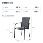 Our outdoor dining chairs boast a sturdy frame for lasting durability. Stackable for convenient storage, they're built to withstand outdoor elements with ease.