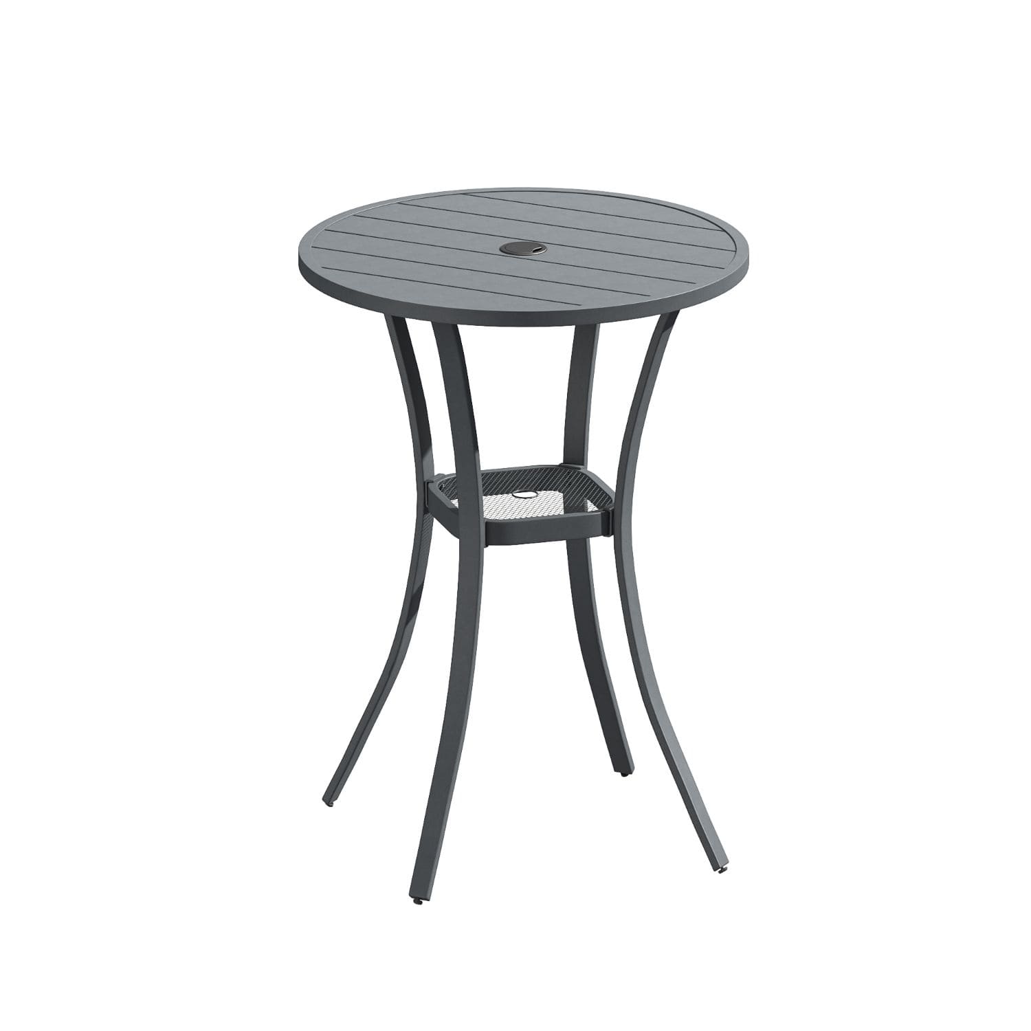 Vicllax Outdoor 28" Round Bar Table with Umbrella Hole and Storage Shelf