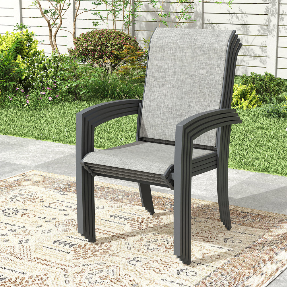 Our outdoor dining chairs boast a sturdy frame for lasting durability. Stackable for convenient storage, they're built to withstand outdoor elements easily.