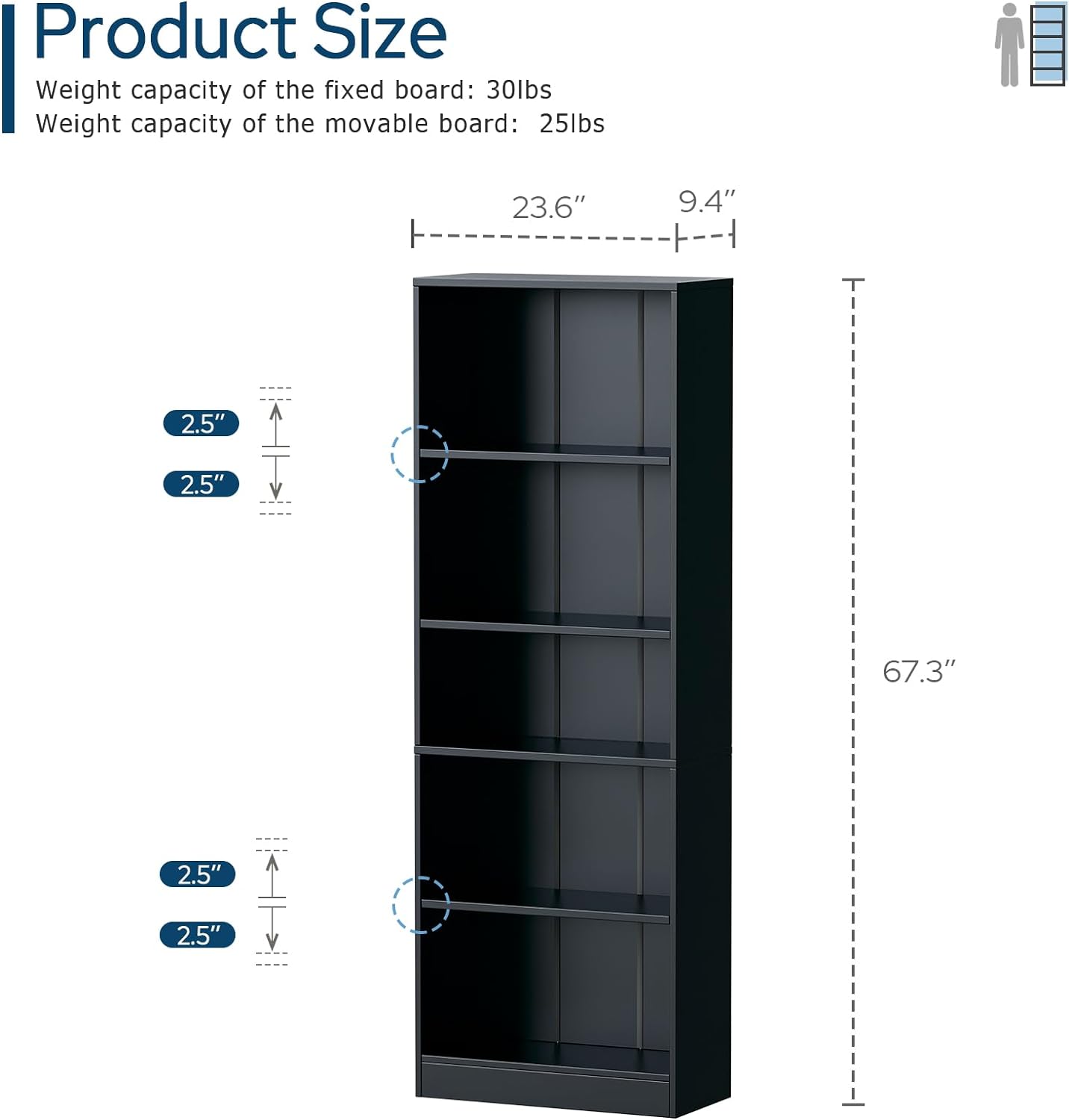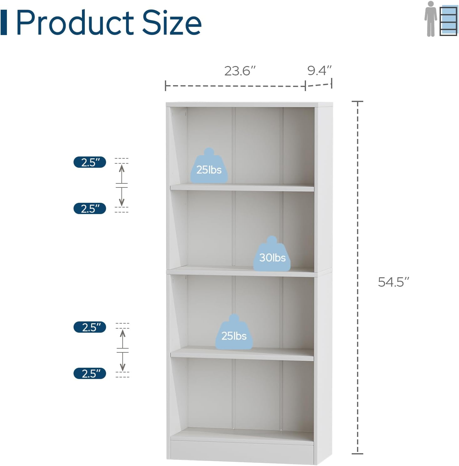 - 【Dimensions & Weight Capacity】Solid fixed bookcase particleboard provides 30 lbs per shelf weight capacity, and adjustable bookshelves can support up to 25 lbs each. The 4-tier bookcase holds your series collections without taking up too much floor space. Perfect for reading rooms, bedrooms, hallways, or smaller living areas