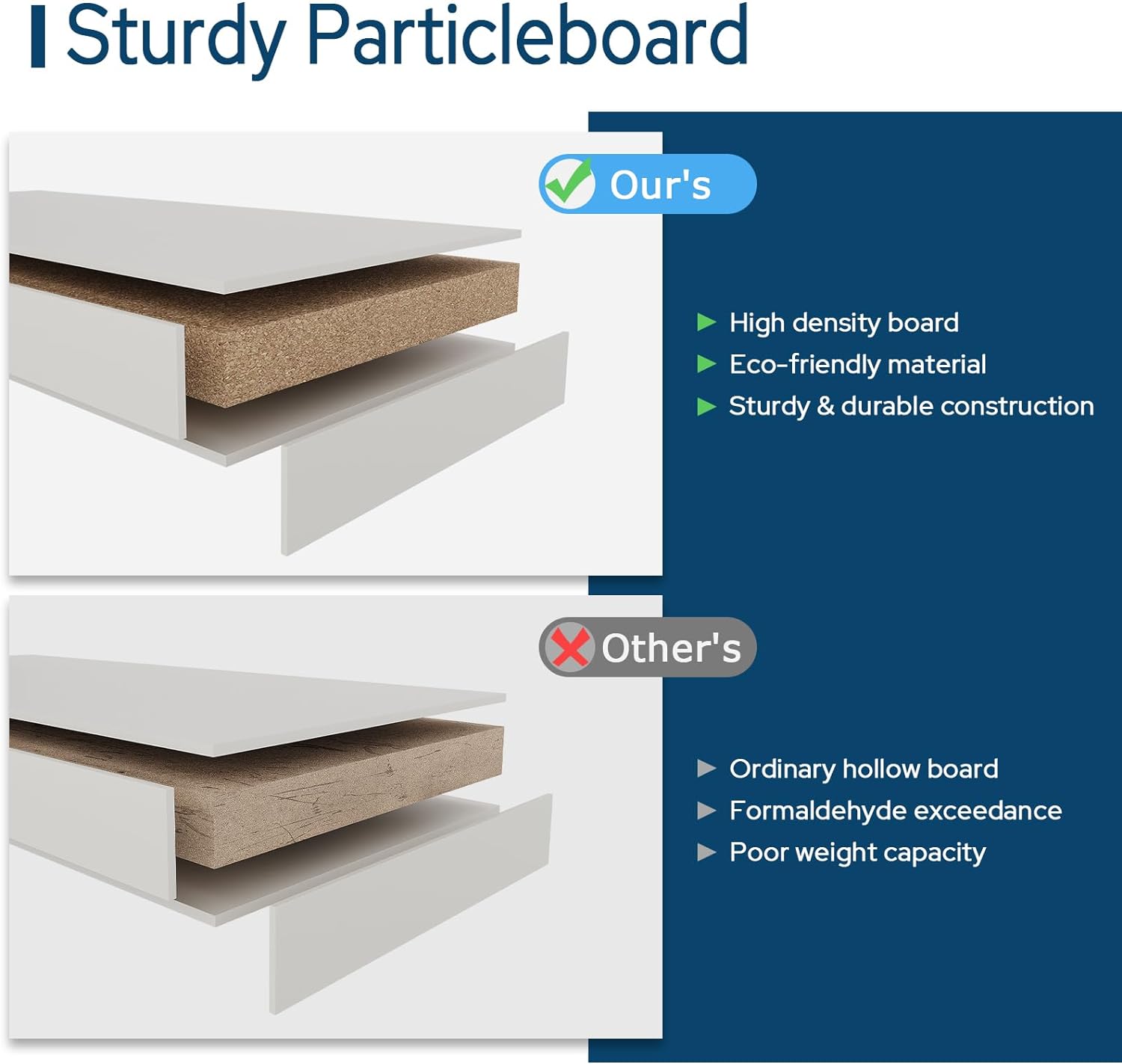 - 【Melamine Material】Made of solid fixed E0-class particleboard and melamine finished, better scratch-, shatter-, and water-resistant, no special care needed