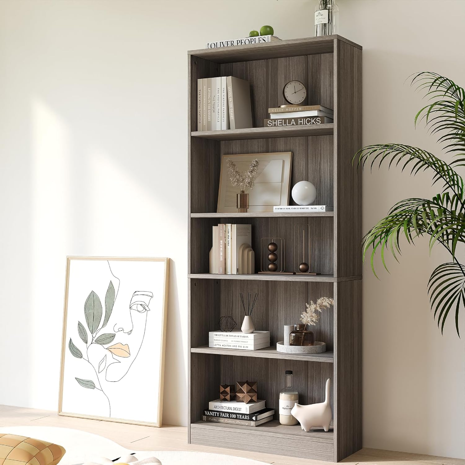 Vicllax Wooden Bookcase, 4/5 Shelf Height- Adjustable Open Bookshelf for Home Office